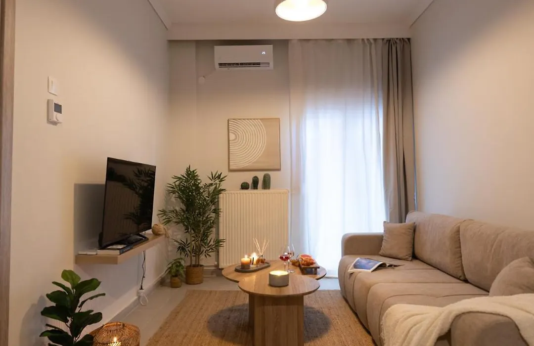 Cozy Apartment In Thessaloniki offers a balcony and a dressing room, as well as comforts like an air conditioner. The apartment features a bathroom with a hairdryer, a shower cap, and towels. Furthermore, a roll-in shower, a separate toilet, and a sink is available.